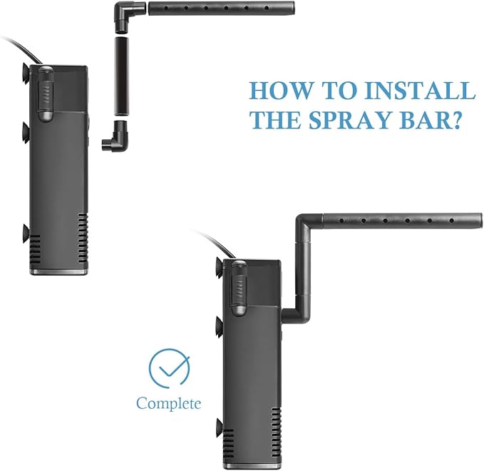 - [Multifunctional Fish Filter] The fish tank filter has two different outlets, a spray bar and an aeration outlet. The spray pipe can allow water to flow out like a waterfall, which has a good filtering effect and allows a small amount of oxygen to enter the fish tank. The oxygenation outlet can effectively oxygenate and adjust the amount of oxygenation.