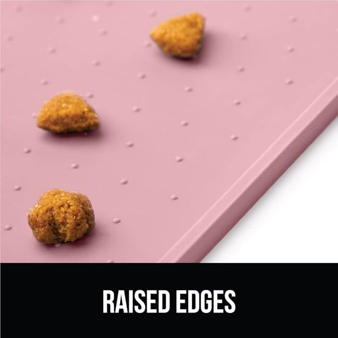 GORILLA GRIP 100% Waterproof Raised Edge BPA Free Silicone Pet Feeding Mat, Dog Cat Food Mats Contain Spills Protects Floors, Placemats for Cats and Dogs Water Bowl, Pets Accessories 16x10, Pink