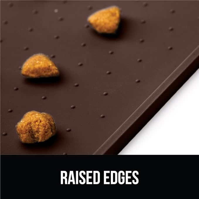 GORILLA GRIP 100% Waterproof Raised Edge BPA Free Silicone Pet Feeding Mat, Dog Cat Food Mats Contain Spills Protects Floors, Placemats for Cats and Dogs Water Bowl, Pets Accessories 16x10, Brown