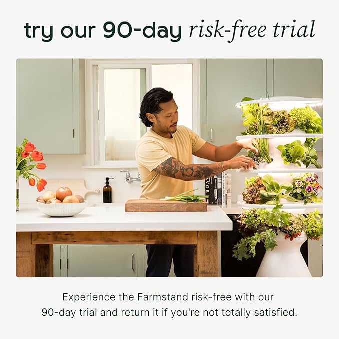- 18 SEEDLING CREDITS: This starter kit includes a unique QR code on your Farmstand packing slip with instructions to redeem 18 seedlings from our website. Your special seedling bundle includes the best veggies, leafy greens, herbs, fruits and lettuce of the season. These pesticide free, non-GMO, pre-grown plants will have you harvesting 3 weeks early and help ensure your success. Seedlings not shippable to U.S. outlying territories.