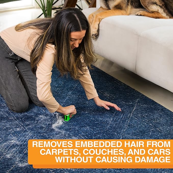 - GREAT FOR EMBEDDED HAIR - The top of the FurDozer X3 can get deep into carpets and couches to remove embedded hair that you didnโt even know was there. Not just for pet hair, the FurDozer will also help to collect and clean hair, lint, and other debris from your car, furniture, rugs, and more.
