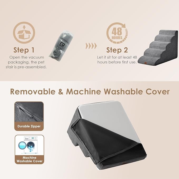 - SPECIFIC AND STEADY DESIGN - 33D density of pure foam make this stair more steady when your pets walk on. The dog bed stairs can provide strong support for pets in the walking process. Low angle slope design can better protect your pet's joints.