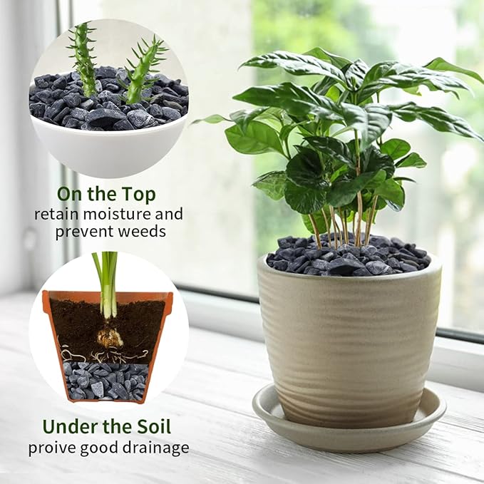 - 【Indoor and Outdoor Decorative Stones】FANTIAN black pebbles are perfect for home decor projects, such as potted plants, vases, succulents, display glass jars, glass hurricane candle holders, cactus, bamboo plants, rock gardens, yard, paving the way and more