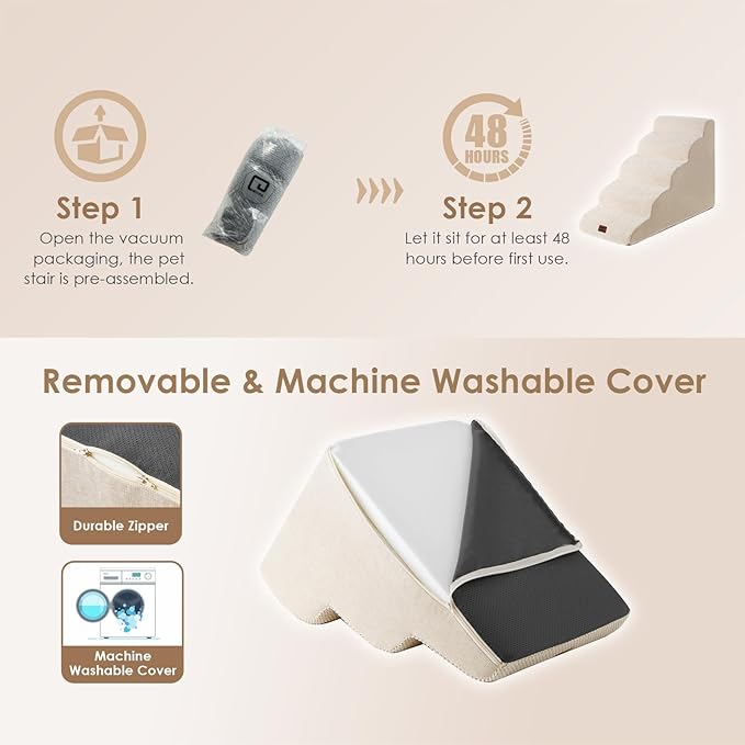 - EASY TO CLEAN - The dog step has a removable washable cover made of bonded fleece that can be hand washed or machine washed, so you don't require spending a lot of time cleaning it. It's very convenient.