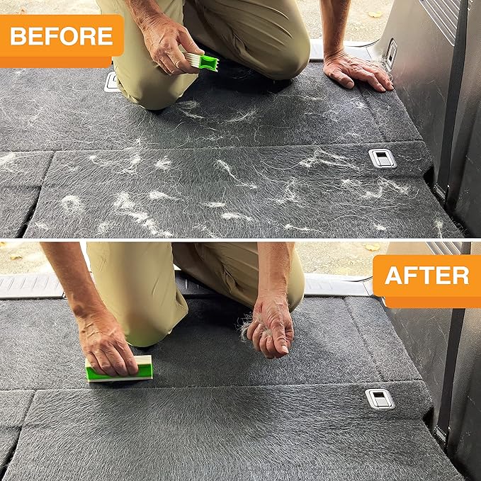 - WORKS ON MULTIPLE SURFACES & EASY TO USE: The FurDozer combines a patented revolutionary design with hi-tech materials to work on multiple surfaces, including Carpets, Cars, Couches, and more! It is also super easy to use. Simply hold the tool flat and apply pressure to dig out embedded hair, collect hair into a pile, and toss! Unlike lint rollers that have a lot of paper waste, the FurDozer is reusable, eco-friendly, and easy to clean.