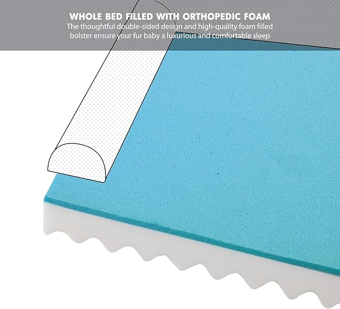 - Orthopedic Support Dog Couch with 2 layer foam base: 3" egg crate foam and 0.5" memory foam helps distribute weight evenly and provides good amount of softness and support to relieve pressure and joint pains for senior pets.