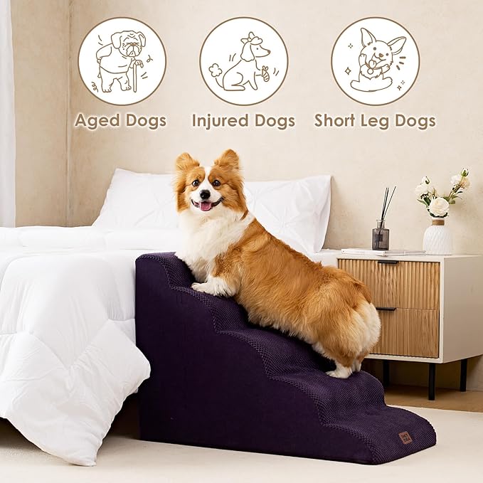 EHEYCIGA Curved Dog Stairs Ramp for High Beds 22.6" H, 5-Step Dog Steps for Small Dogs and Cats, Pet Stairs for High Bed Climbing, Non-Slip Balanced Pet Step Indoor, Purple