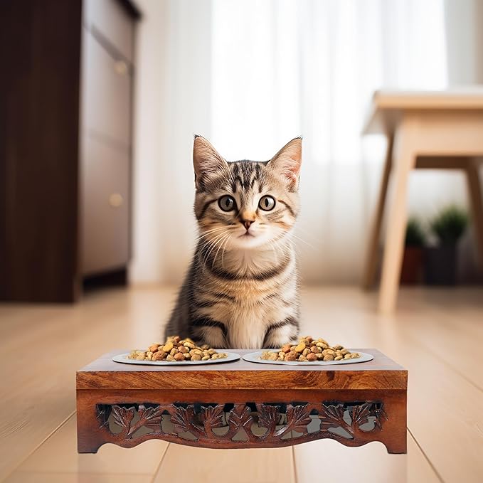 - š Perfect for Small and Medium-sized Pets: Upgrade your pet's feeding experience with the Scroll Handcarved Pet Feeding Station by IRONGATE - Sleek, Eclectic, adventurous, and ready for food. This dog food stand allows your pet to eat in a healthy position to reduce stress on the neck and spine. This promotes better digestion and thus better health. Keeps your pet happy and comfortable.