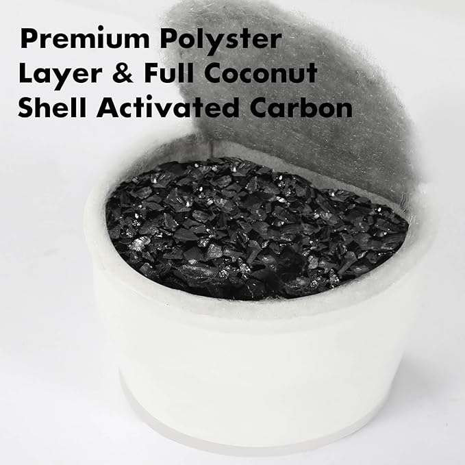 16 Pack Cat Water Fountain Filters Replacement, 8 Carbon Filters and 8 Foam Sponge Pre-Filter Fit for Multiple Ceramic and Stainless Steel Pet Fountains