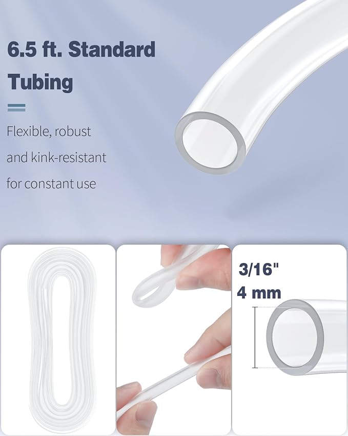 - Pump Accessories: Contain 6.5-foot 3/16" airline tubing (ID: 4 mm), 2 small air stone cylinders, 2 connectors (straight & T-shape) and 2 check valves. All build the basic aeration setup in your fish tank