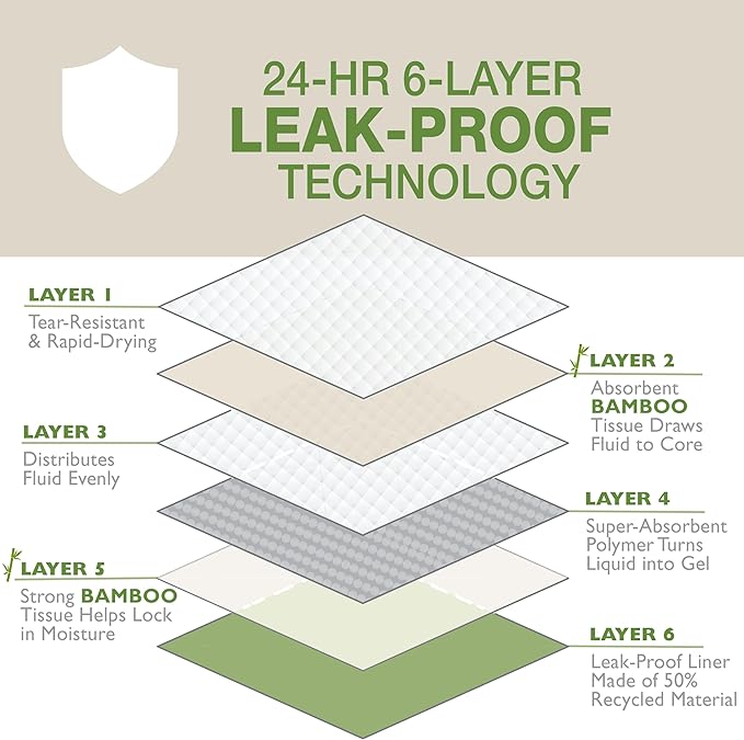- 6 Layer Leak Proof Technology - Exclusive Floor Armor System draws fluid to the core and locks in moisture