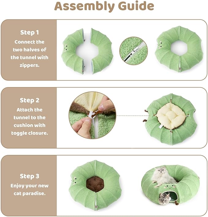 - Easy to Clean: With your convenience in mind, EHEYCIGA cat tunnel bed is effortless to assemble and quick to store. The removable cushion is machine washable.
