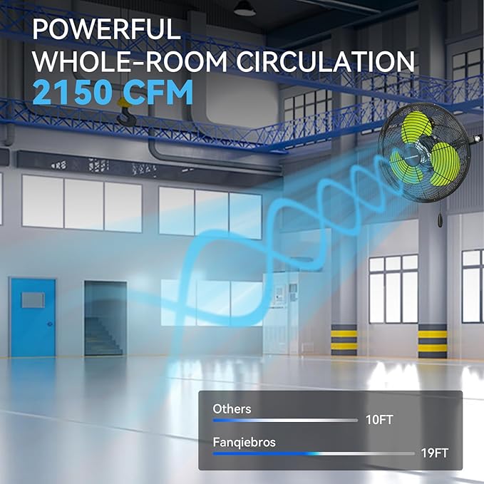 - šš¢š š” ššš„šØšš¢šš² šš¢š« š š„šØš° - Equipped with 3 adjustable wind speeds, low (1700CFM), medium (2100CFM) and high (2500 CFM), this wall fan utilizes the raw power of the pure copper motor to provide hurricane-like airflow to meet your garages, shops, covered patios, or anywhere else you need