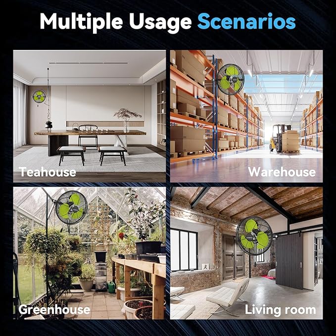 - ššØš°-ššØš¢š¬š ššš¬š¢š š§ - The black heavy-duty wall fan operates at a high speed of 9500 CFM with a noise level of only 65dB, which is lower than the industry standard, creating a quieter gathering or working environment
