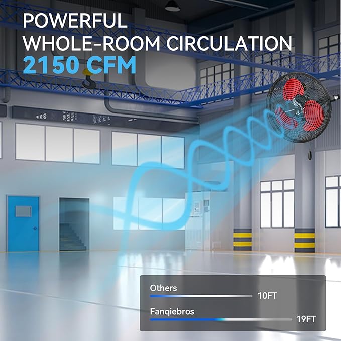 - šš¢š š” ššš„šØšš¢šš² šš¢š« š š„šØš° - Equipped with 3 adjustable wind speeds, low (1700CFM), medium (2100CFM) and high (2500 CFM), this wall fan utilizes the raw power of the pure copper motor to provide hurricane-like airflow to meet your garages, shops, covered patios, or anywhere else you need