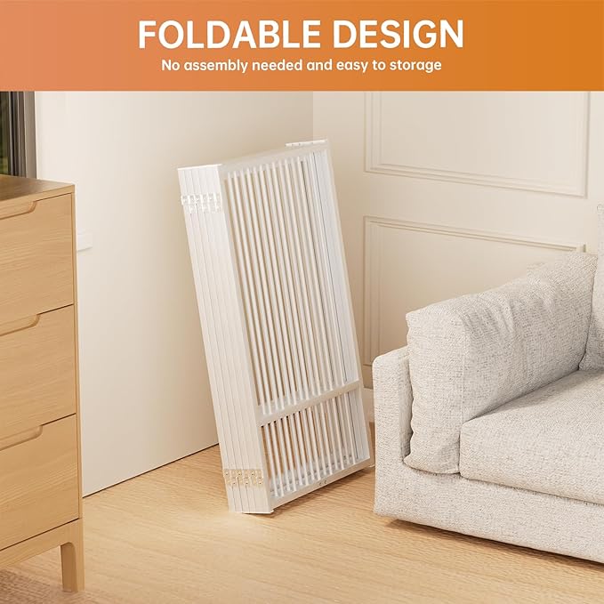 - [Versatile Sizes]: Our pet dog gate is available in 24-inch and 32-inch heights, perfect for puppies, small and medium dogs pets. Multi-choice of 2 panles, 4 panles and 6 panles, suitable for stairs, kitchens, bedroom doors, corridors and other indoor and outdoor forbidden areas.