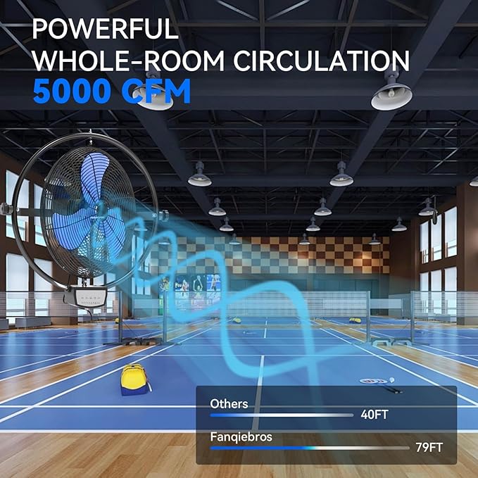- ๐๐จ๐ฐ-๐๐จ๐ข๐ฌ๐ ๐๐๐ฌ๐ข๐ ๐ง - With optimized motor and vibration reduction technology. When running at a high speed of 5000 CFM, the noise level is only 59 dB, this wall fan is lower than the industry standard, creating a quieter gathering or working environment