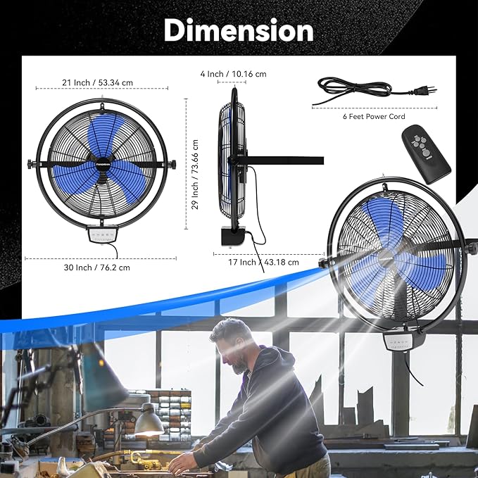 - ๐๐๐ฆ๐จ๐ญ๐ & ๐๐๐ง๐ง๐ฎ๐๐ฅ - This remote control wall fan supports two switching methods. You can easily operate the heavy duty wall fan through manual buttons or remote control. You can remotely control the wall mounted fan without going to the wall fan. Easily adjust the wind speed, mode and other settings to enjoy the most comfortable wind experience