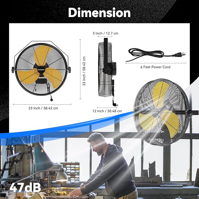 - ššØš°-ššØš¢š¬š ššš¬š¢š š§ - The heavy-duty wall fan operates at a high speed of 4580 CFM with a noise level of only 60dB, which is lower than the industry standard, creating a quieter gathering or working environment