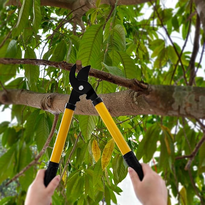 - 🌷POWERFUL 14-INCH LOPPER – Effortless Cutting & Precision – Engineered for clean, smooth cuts, our razor-sharp, hardened steel lopper blades slice through thick branches and tough stems with ease. The long ergonomic handles provide extra leverage to reduce effort and hand strain, making pruning effortless.