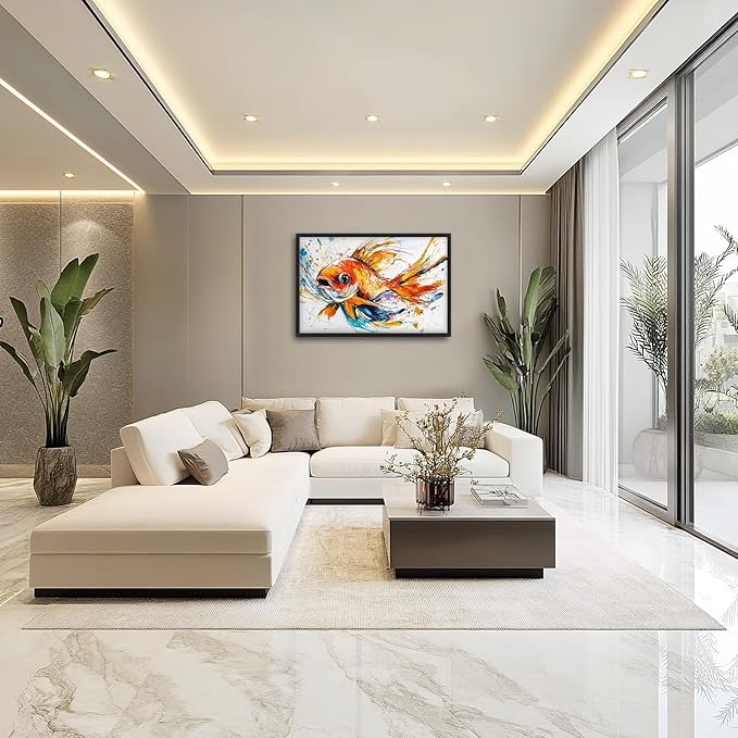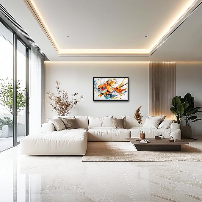 Framed Large Fish Wall Art for Living Room, Oversized Graffiti Goldfish Wall Decor Watercolor Fishing Canvas Painting Modern Artwork Home Decoration for Living Room Bedroom Office 36"x24"
