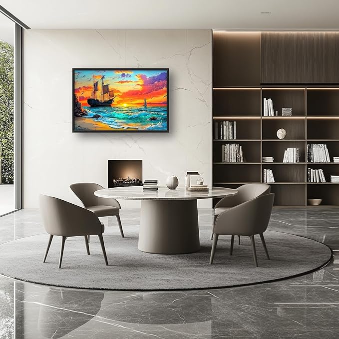 Framed Large Ship Wall Art for Living Room, Oversized Coastal Beach Boat Wall Decor Nautical Seascape Sailboat Canvas Painting Modern Artwork Home Decoration for Living Room Bedroom 36"x24"