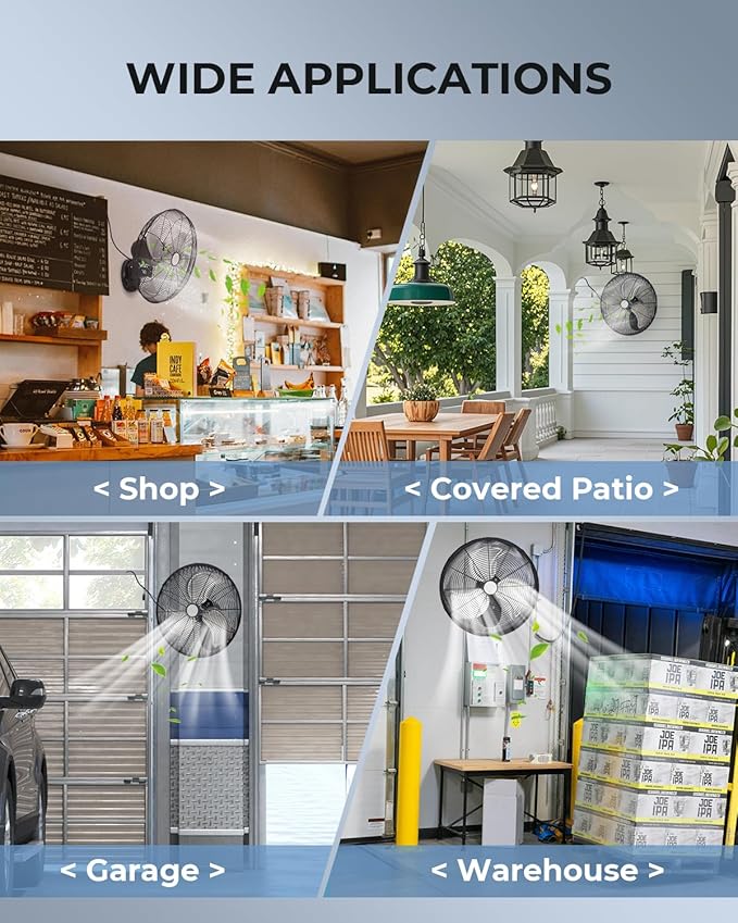 - Easy to Assemble & Use: 20 inch heavy duty oscillating fan included wall mounting hardware for a fast install on concrete walls. Just drill, mount the bracket, attach the blades and grille, and enjoy cooling in under 5 minutes!