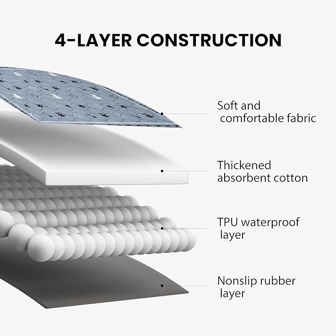 - Thick & Durable-Materials:Thicker and more absorbent, saving the time you need to replace pads. The back of them does not easily get saturated. The durable waterproof layer reduces liquid from leaking to the floor/carpet. Comfortable and no tracking. Keep your home clean.