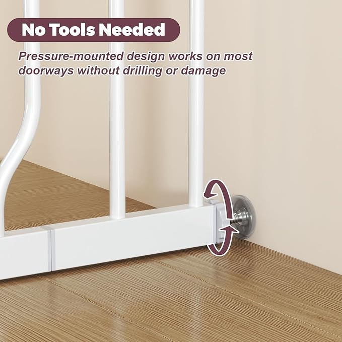 - Tool-Free Installation: The pressure-mounted gate for baby & pet provides a secure hold while protecting your walls and doorways from damage, ideal for renters and hassle-free setups. The pet gate indoor offers a quick, temporary solution that's both safe and convenient.