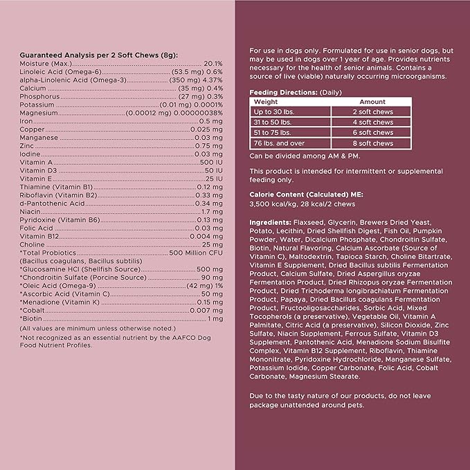 12-in-1 Multivitamin for Senior Dogs - 60 Senior Dog Vitamin and Supplement Soft Chews for Hip and Joint - Advanced Formula with Glucosamine, Omega 3,6,9, Vitamins, Probiotics - Made in The USA