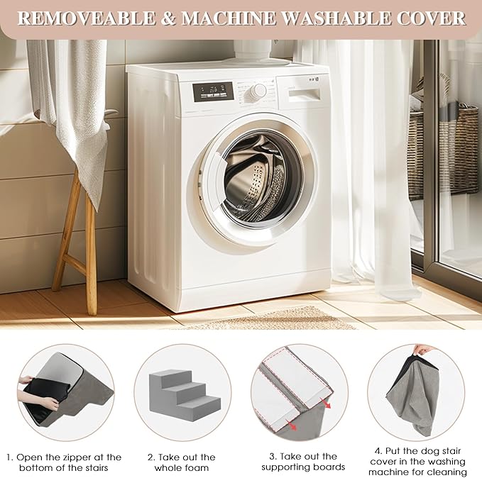 • 【EASY TO CLEAN】 When used for the first time, no assembly is required. After opening the package, allow 48 hours for the stairs foam to rebound. When clean it, just take out the foam and supporting boards. The removable cover is machine washed. Please do not wash the foam to retain shape and support.
