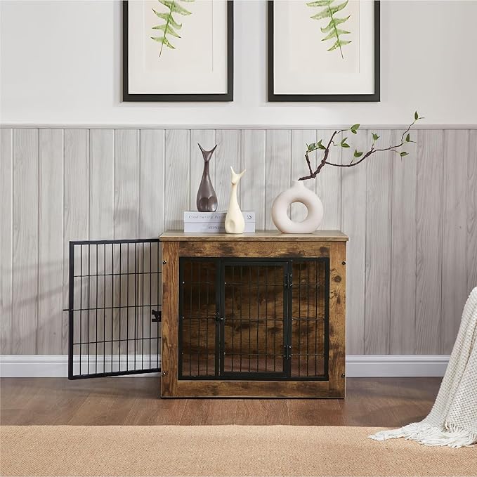 - 【Multi-Functional Design】: This dog crate furniture serves as a cozy space for your pet and doubles as a stylish side table, end table, or nightstand. The spacious top offers room for decorations like plants, photo frames, or books, making the dog crate a practical and attractive addition to your home.