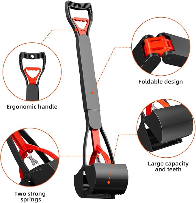 - 【32" Long Handle】 Provides ample reach, so you can pick up poop without straining your back. Perfect for those who value comfort and convenience.The handle is designed for a comfortable grip, even when wet. Ensures a secure hold during use.