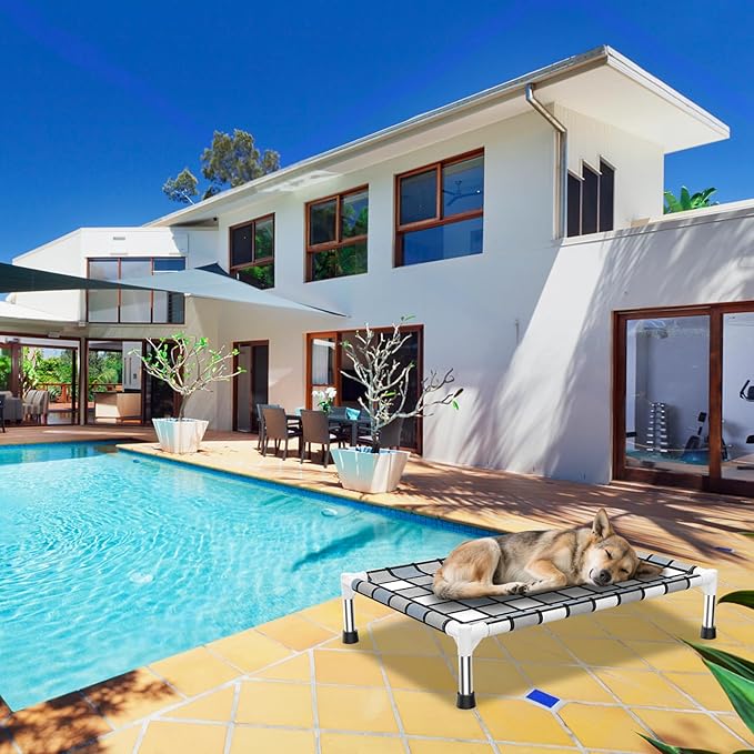 - 【EXQUISITE CRAFTSMANSHIP OF OUTDOOR DOG BED】Manufactured with precision craftsmanship, each elevated pet bed undergoes rigorous quality checks. Fine stitching and robust structures ensure the product's longevity, capable of withstanding repeated use by pets