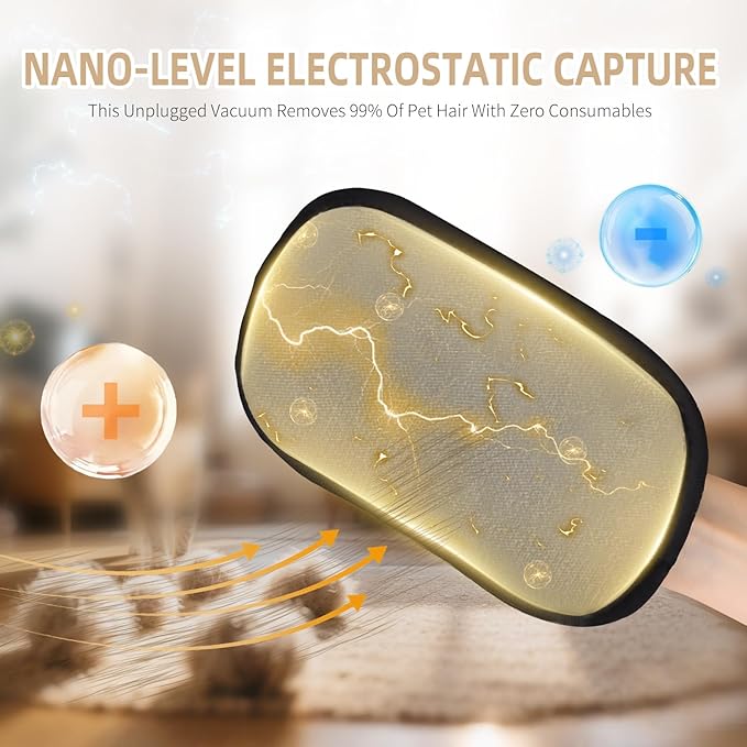 - ⚡【Effortless Cleaning with Electrostatic Technology】Harnessing the power of static electricity, our magic brush pet hair remover effortlessly lifts lint, pet hair, and dust with easy left-to-right strokes. Forget about tedious rolling or fighting stubborn debris—our gloves make cleaning a breeze, transforming your experience into a simple and enjoyable task.